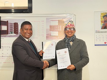 The MoU was formally signed by Mr. Binod Shrestha, President of NSSF, and Prof. Bal Chandra Luitel, PhD, Dean of KUSOED, during a signing ceremony held at the KUSOED office. The ceremony was attended by NSSF Vice President Mr. Mohan Kumar Karki; Secretary General Mr. Raj Kumar Karki, Board Member and Chief Financial Officer Mr. Sobin Raj Regmee, along with faculty members of KUSOED.