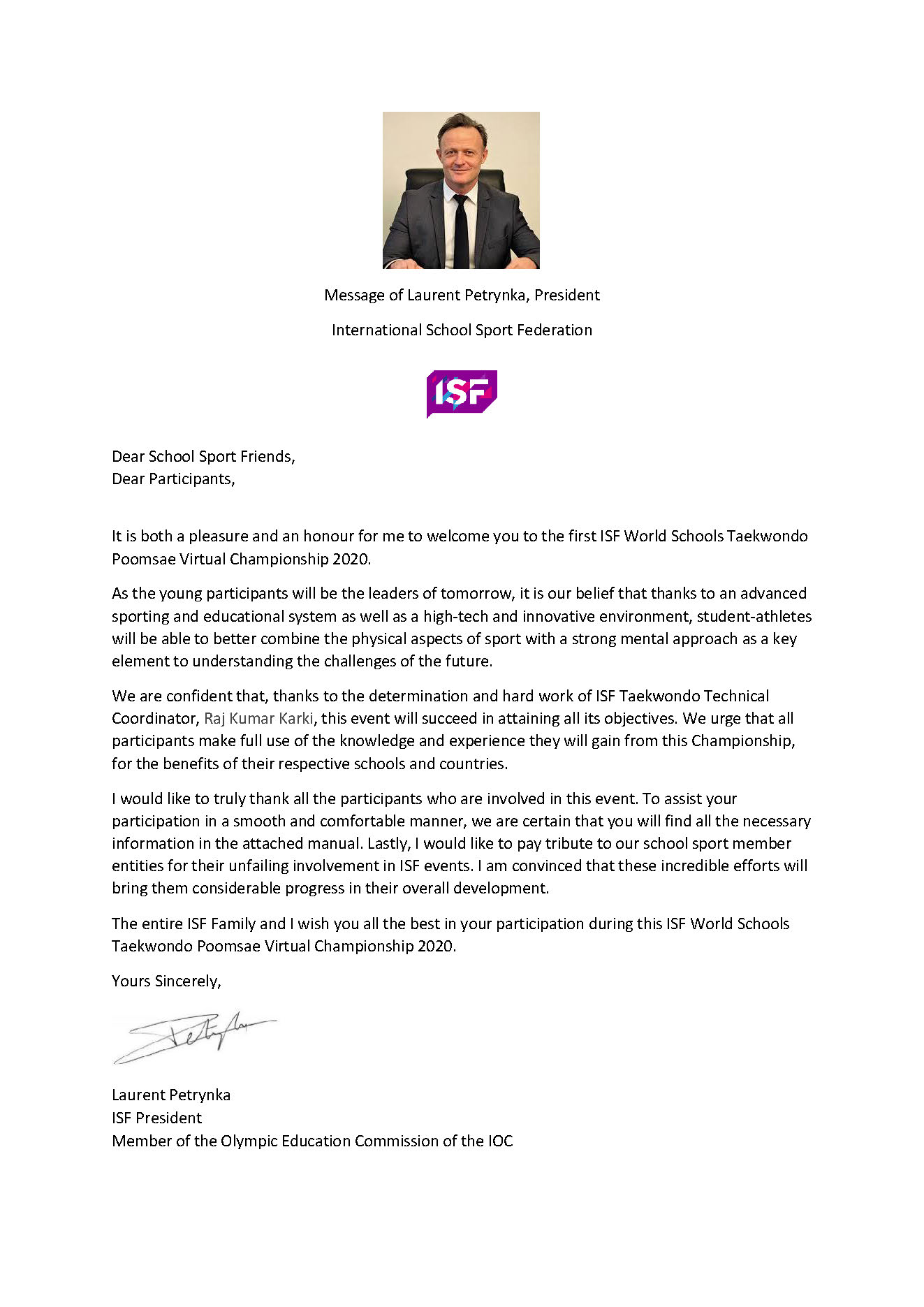 ISF World Schools Taekwondo Poomsae Virtual Championship 2020